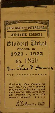 - ↑ "University Football Statistics". The Pitt Weekly. Vol. 12, no. 2. October 5, 1921. p. 4. Retrieved January 27, 2021.