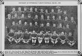 The 1921 Pittsburgh Panthers football team was an American football team that represented the University of Pittsburgh as an independent during the 1921 college football season. In its seventh season under head coach Pop Warner, the team compiled a 5–3–1 record and outscored all opponents by a total of 133 to 50.[1][2] The team played its home games at Forbes Field in Pittsburgh.