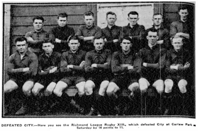 - ↑ "First Round Completed/Fast Game at Carlaw Park/Ponsonby Defeats Richmond". The New Zealand Herald. Vol. LXIV, no. 19667. 20 June 1927. p. 13. Retrieved 25 September 2019.
