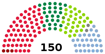All 150 seats in the Storting 76 seats needed for a majority | |||||||||||||||||||||||||||||||||||||||||||||||||||||||||||||||||||||