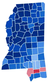 This was the first election since 1888 that a Republican won any county in Mississippi, and the first time since 1892 where a county in the state would vote for a candidate who was not a Democrat. Pearl River, Stone County, George County voted Republican for the first time since their creation.