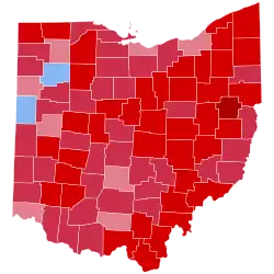 Between 1856 and 1908, Ohio had voted consistently, though generally narrowly, for Republican candidates, because the heavily Yankee northeast and Ohio Company counties of the southeast slightly outvoted the anti-Civil War Appalachian south and German-American counties of the northwest.[1] Woodrow Wilson, who grew up in Appalachia whose culture exert a major influence on Buckeye State politics, would carry the state in both of his winning presidential campaigns in 1912 and 1916. However, reaction against Democratic nominee James M. Cox, who had opposed the teaching of German in schools when the state's Governor,[2] meant Ohio went Republican by a 20% margin in the landslide of 1920, and five counties went Republican for the first time ever.[3]