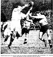 - ↑ "League Test/Win for England/24 Points to Nine/Dominion Forwards Outclassed/Cooke's Fine Display". Auckland Star. Vol. LXIII, no. 180. 1 August 1932. p. 11. Retrieved 10 November 2019.