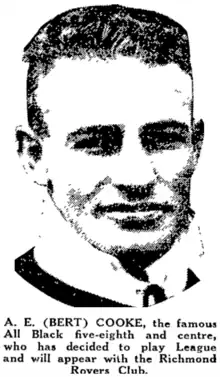 - ↑ "Cooke For League/Ex-Rugby Star Goes Over/Accepts Offer of Position". The New Zealand Herald. Vol. LXIX, no. 21220. 28 June 1932. p. 7. Retrieved 9 November 2019.