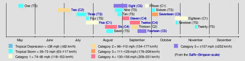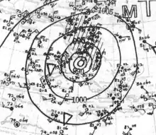 - ↑ The Saffir-Simpson hurricane wind scale was developed in 1971,[6] and has been retroactively applied to the entirety of the Atlantic hurricane database.[7]