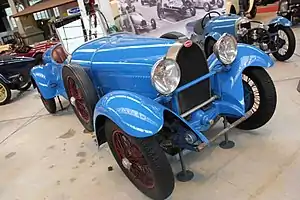 There were five big Bugattis entered this year. Racing journalist Roger Labric got a degree of works support, with two mechanics from Molsheim and driver Pierre Veyron. His was the biggest Bugatti – the supercharged 5-litre Type 50 run by the late Guy Bouriat and Albert Divo in 1931.[11] There were three Type 55 cars entered, with their 2.3-litre supercharged engines. That of the Équipe Braillard did not arrive, while the others were of privateers Charles Brunet and Victor Bayard.[12] There was also a privately-entered 3-litre Type 44, a popular touring model but only capable of 80 bhp. It was not expected to be among the front-runners, even among the smaller British sports cars, but it would be reliable with an engine not over-stressed.[12]