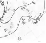 In 2012, as part of the National Hurricane Center's reanalysis project, a new tropical cyclone was retroactively added to the season. A stationary front sagged across the western Atlantic in the final days of August. On September 1, an extratropical low developed as the front began to dissipate,[5] and it quickly transitioned into a tropical storm by 06:00 UTC while south and west of Bermuda. The system moved northwest and reached peak winds of 50 mph (80 km/h). Slight weakening ensued before it made landfall on the North Carolina Outer Banks at 10:00 UTC on September 3. The cyclone continued to decay as it moved across Virginia and Maryland,[6] and it was absorbed by a front northwest of Baltimore after 06:00 UTC the next morning.[5][6]