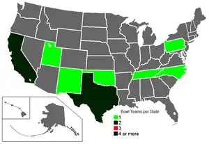 ![]() Number of bowl games per state | |||||||||||||||||||||||||||||||||||||||||||||