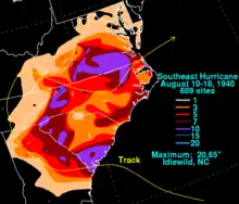 - ↑ Roth, David M.; Weather Prediction Center. "Southeast Hurricane - August 10-18 1940". Tropical Cyclone Point Maxima. Silver Spring, Maryland: United States National Oceanic and Atmospheric Administration's National Weather Service. Retrieved May 8, 2013.