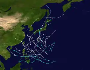 This typhoon formed in the northwest of Micronesia, tracked to the northwest direction and recurved to the northeast of Philippines before dissipating. [6]