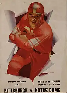 - ↑ Jim Costin (October 6, 1946). "N.D. Is Unimpressive in Trampling Pitt 33-0: Running Game Is Throttled by Young Rivals; Irish Forced to Take to Air to Win in Home Opener". The South Bend Tribune. p. III-1 – via Newspapers.com.