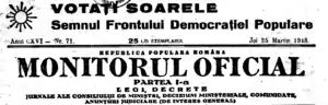 Parliamentary elections were held in Romania on 28 March 1948.[1] They were the first elections held under communist rule; the communist-dominated parliament had declared Romania a people's republic after King Michael was forced to abdicate in December 1947.[2][3]