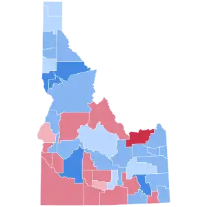 This election marked the conclusion of Idaho's status as a swing state, as it would quickly become one of the most Republican states in the nation. Since this election, Idaho has supported a Democratic presidential nominee only once, when Lyndon B. Johnson carried the state by 1.83 points in 1964, amidst a national Democratic landslide. Furthermore, other than Johnson, no Democrat except John F. Kennedy in 1960 has won even 40% of the state's vote. Republicans would also score landslide wins in the 1950 state elections,[8] This is the last election in which the southeastern Mormon counties of Bonneville, Bingham, Jefferson, Madison, Minidoka and Oneida (now known as some of the most heavily Republican counties in the nation) voted for a Democratic presidential candidate.[9]