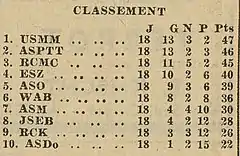2 | ASPTT Alger | 18 | 13 | 2 | 3 | 39 | 19 | +20 | 46 | |