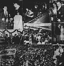 Brazilian press anticipated the return of the club's delegation, which was honored by the Brazilian Sports Confederation and received a standing ovation at the Maracanã before a Campeonato Carioca match.[19][20] The team was welcomed by over 50,000 people upon its return to Belo Horizonte, in what was described as an "apotheotic" celebration in the city streets.[17][21] Despite not having an unbeaten run, sports media lauded Atlético Mineiro's tour as a historical success for the country's football,[3] which had suffered a major setback with the Maracanazo in the same year. The results achieved under adverse conditions and snowy grounds led to the dubbing of the team as Campeões do Gelo (Portuguese for "Ice Champions"), a feat remembered in the club's official anthem.[22]