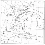 On November 25, a cold front was stalled over the western Atlantic Ocean. A day later, an extratropical storm producing hurricane-force winds developed about 200 mi (320 km) south-southeast of Cape Hatteras, North Carolina. The storm remained nearly stationary for several days near the coast, drifting westward and later to the south. On November 27, the storm's wind structure became more symmetric, with an inner core developing inside the larger extratropical low. Based on ship reports near the center, the system transitioned into a hurricane early on November 28; due to its interaction with the extratropical storm, the system was potentially a subtropical cyclone, although the lack of satellite imagery prevented such a classification. By later on November 28, the hurricane weakened to a tropical storm, affected by wind shear. By that point, the storm had turned to the east, followed by a turn to the northwest and later west-southwest on the next day. Late on November 30, satellite imagery indicated an eye-like feature in the center of the storm. A day later, the storm re-intensified into a hurricane, reaching its peak intensity of 90 mph (150 km/h). On December 2, the hurricane turned back to the southwest as it made its closest approach to the Outer Banks. Stronger wind shear caused the hurricane to weaken to a tropical storm again on December 3, as an approaching cold front steered the storm northeastward. Two days later, the storm transitioned back into an extratropical storm to the east of the Outer Banks, briefly regaining hurricane intensity on December 5. A day later, a larger extratropical storm over the northeastern United States absorbed the former hurricane.[7]