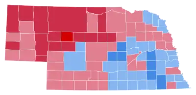 As of the 2020 presidential election, this is the last time the Democratic candidate won Nebraska at large, the 1st congressional district, as well as Adams County, Sarpy County, Cass County, Washington County, Saunders County, Gage County, Dixon County, Nemaha County, Richardson County, Boone County, Lincoln County, Polk County, Fillmore County, Johnson County, Cedar County, Buffalo County, Seward County, Hall County, Jefferson County, Thayer County, Webster County, Platte County, Nuckolls County, Clay County, Colfax County, Franklin County, Howard County, Nance County, Logan County, and Kearney County. Douglas County and Lancaster County would not vote Democratic again until 2008.[5] Barack Obama would later win the state's 2nd congressional district in 2008 and received one electoral vote from the state. Joe Biden, Obama's running mate in 2008, did the same in 2020. Nebraska as a whole, however, has remained a safely Republican state, and has voted Republican by double-digits in every subsequent election.