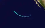 The first storm to make landfall, Katrina formed on August 30.[14] It became the third hurricane of the season 30 hours after it was named. The night that Katrina became a hurricane, it made landfall on the Baja Peninsula with winds of 85 miles (137 km) per hour. It emerged soon after and paralleled the peninsula until making landfall at the head of the Bay of California. It rapidly weakened to a tropical depression and dissipated over Arizona.[15][16] In Mexico, Katrina caused significant damage to parts of San Felipe. A total of 2500 people were left homeless and 60 ships were sunk. At least one person was killed.[17][18]