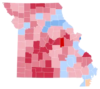 Nixon overcame Humphrey's 85,000-vote margin in St. Louis by dominating the state's interior and holding his deficit to Humphrey in Jackson County, where most of Kansas City is located, to 21,000 votes. Nixon was the first Republican to win Audrain County and Boone County since 1868, whilst Callaway and Platte counties voted Republican for the first time ever.[2]