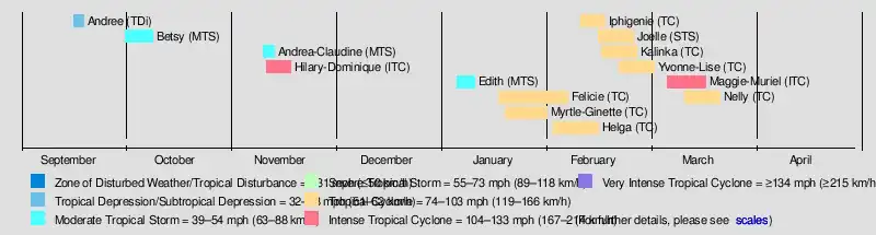 - Maggie/Muriel, 7 to 20 March 1971 in central Indian Ocean
