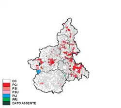 Italian Communist Party | 727,619 | 25.9 | 13 | |