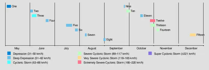 - ↑ "Frequently Asked Questions: What is the annual frequency of Cyclones over the Indian Seas? What is its intra-annual variation?". India Meteorological Department. 2012. Archived from the original on May 21, 2015. Retrieved June 8, 2012.