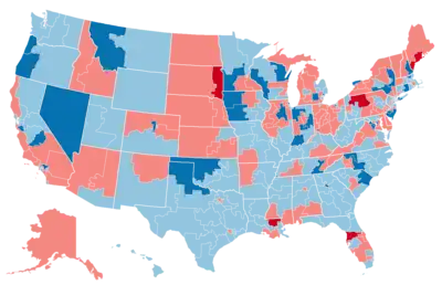 The Democrats won the nationwide popular vote for the House of Representatives by a margin of 16.8 points.[1] This translated to a net gain of 49 seats from the Republicans, increasing the party's majority above the two-thirds mark.