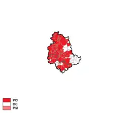 Italian Communist Party | 257,606 | 46.1 | 14 | |