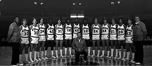 The team's starting lineup included Rick Leighty, Ken Ferdinand and Levi Cobb as forwards, Audie Matthews and Steve Lanter at the guard positions, and Rich Adams playing center.