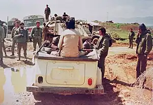 ![]() Israeli soldiers meeting with Lebanese ex-military officer Saad Haddad during the invasion | |||||||||