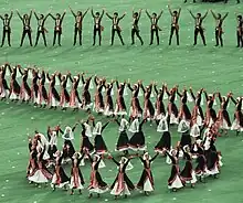 - Children's performance, beginning with a boys' pole horse performance, followed by a girls' doll performance. Gymnastic maneuvers were done by the performance in each part of the segment, which ended with the boys and girls mixed together, forming groups of "troikas", then leaving the scene.