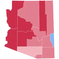 Reagan won every county except heavily unionized Greenlee, which would never vote Republican until 2000,[3] in the process duplicating the state's 1972 county map. This stands as the last election when predominantly Native American Apache County has supported the Republican nominee.[4]