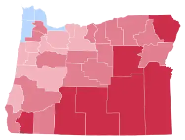 Oregon was ultimately won by former California Governor Ronald Reagan (R) by 9.66%.[9] Reagan dominated in the conservative, populist eastern interior and Rogue Valley, where he won a majority in every county, and Carter, despite carrying four counties, did not win a majority in any due to a strong vote west of the Cascades for Anderson, who reached double figures in all Willamette Valley counties except Columbia and Linn. This was the first time the Republicans had carried Coos County since Dwight D. Eisenhower in 1952.[10] As of the 2020 presidential election, this is the last election in which Lane County voted for a Republican presidential candidate.[11]