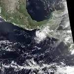 A tropical disturbance emerged off the coast of Central America. Cyclonic turning was noted on the afternoon of October 19, and a tropical depression formed 350 miles (560 km) south of Acapulco. Staggering west-northwestward, the cyclone became a tropical storm by the morning of the October 22. Maximum sustained winds increased to 50 mph (80 km/h) late on October 24. As it moved over cooler waters on October 25, the system weakened to a tropical depression that afternoon, dissipating that night near 21°N 130°W.[2]