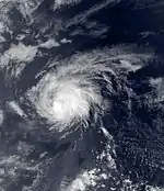 A late-season trough of low pressure developed into a tropical depression and was subsequently upgraded into Tropical Storm Iwa. At first, the After turning to the northeast, Iwa began to slowly intensify, and on November 23, Iwa strengthened into a hurricane.[4][23] Iwa reached peak winds of 90 mph (145 km/h) late on November 23. Accelerating, Iwa passed just north of the island of Kauai on November 24. After passing the island group, Iwa rapidly deteriorated; late on November 24, the hurricane degenerated into a tropical storm. On November 25, Iwa became an extratropical cyclone.[23]