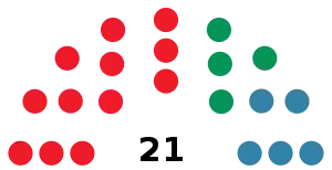 The following table lists party control in the Island Cabildos.[1] Gains for a party are displayed with the cell's background shaded in that party's colour.