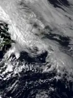 On September 14, a well-defined tropical wave exited the coast of Africa. The next day, it had rapidly organized into a tropical depression. On the afternoon of September 16 the depression attained tropical storm strength, and it was given the name Fran. It turned to the northwest, and passed very near the Cape Verde.[38] 31 people were killed in the country.[39] Fran continued between the northwest and west-northwest on September 17–18 as it continued to organize. During this period satellite imagery indicated that Fran peaked with winds of 65 mph (105 km/h) and a minimum surface pressure of 994 mbar (29.35 inHg). As Fran passed the Cape Verde islands weather stations reported 35 miles per hour (55 km/h) winds, which is tropical depression force. During the period of September 19–20 Fran turned towards westward and began to encounter strong upper-level wind shear, which caused Fran to dissipate on September 20.[38]