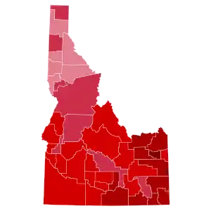 Idaho weighed in for this election as 27.75 percentage points more Republican than the national average and with 72.36 percent of the popular vote, made it Reagan's second strongest state after neighboring Utah.[3]