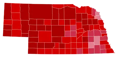 The presidential election of 1984 was a very partisan election for Nebraska, with over 99% of the electorate voting for either the Democratic or Republican parties, and only five parties formally appearing on the ballot.[1] Reagan won a majority in all of Nebraska's counties, joining previous Republican nominees Theodore Roosevelt in 1904, Warren Harding in 1920, Dwight Eisenhower in 1952, Richard Nixon in 1972, and himself in 1980.