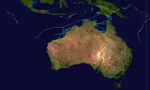 Irma | 19–22 January | Category 2 tropical cyclone | 110 km/h (70 mph) | 978 hPa (28.88 inHg) | Western Australia, Northern Territory | ||||