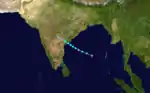 A monsoon depression became more tropical on October 14 in the Bay of Bengal. It traveled northwestward, becoming a tropical storm on the 15th and hitting southeastern India as a 50 mph storm that night. It rapidly dissipated over land.