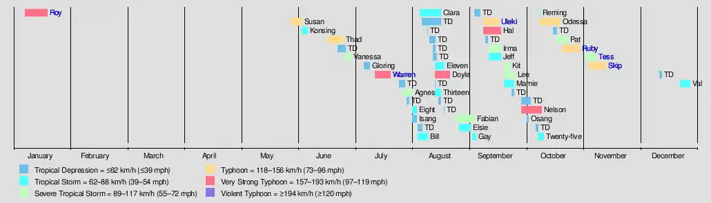 - 1 2 3 4 5 6 7 8 9 10 11 12 13 14 15 16 17 18 19 20 21 22 23 24 25 26 27 28 29 30 31 32 33 34 35 36 37 38 39 40 41 42 43 44 45 46 47 48 49 50 51 52 53 54 55 56 57 58 59 60 61 62 63 64 65 66 67 68 69 70 71 72 73 74 75 76 77 78 79 80 81 82 83 84 85 86 87 88 89 90 91 92 93 94 95 96 Joint Typhoon Warning Center; Naval Pacific Meteorology and Oceanography Center (1989). Annual Tropical Cyclone Report: 1987 (PDF) (Report). United States Navy, United States Air Force. Archived from the original (PDF) on February 21, 2013. Retrieved July 19, 2017.