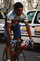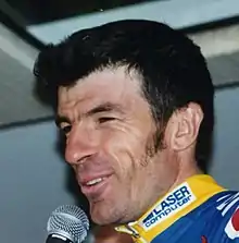 Erik Breukink was among several other riders named as favourites.[26] Sean Kelly, was the record winner of the points classification and appeared in good form, having just won the Tour de Suisse, but was thought to be working for Breukink.[33] Spanish newspaper El País considered Delgado to be the top favourite, but also named Fignon, LeMond,[34] and Gianni Bugno (Chateau d'Ax–Salotti), who had won the Giro earlier that year, as potential winners.[35] Mundo Deportivo also named Charly Mottet (RMO) among the favourites.[36] His best result that season had been a second place behind Bugno at the Giro.[37] Also on the start line was Marco Giovannetti, winner of the Vuelta and third at the Giro. According to cycling journalist Geoffrey Nicholson, his ability to perform in another three-week Grand Tour was doubted from the start, and it was agreed that he only participated to ensure a wildcard entry for his team, Seur.[38]