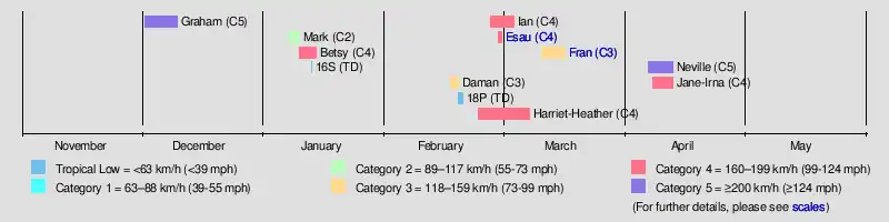 Graham | 2–10 December | Category 5 Severe tropical cyclone | 235 km/h (145 mph) | 915 hPa (27.02 inHg) | None | None | None | None | |