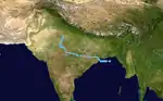 During July 27, a depression developed over the northern Bay of Bengal to the east of the Indian state of Odisha.[2][4] Over the next day the system moved westwards and developed into a Deep Depression, as it made landfall near Badudebpur in Odisha with estimated winds of 55 km/h (35 mph).[4] The system dissipated over East Rajasthan during July 31, as it enhanced monsoon activities over northern and eastern India.[4]