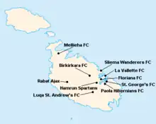 7 | Sliema Wanderers F.C. | 18 | 6 | 3 | 9 | 26 | 31 | −5 | 15 | Qualification for the European Cup Winners' Cup[lower-alpha 1] |