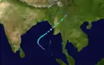 A broad area of convection in the central Bay of Bengal organized into a tropical depression on October 31. It headed northwestward, becoming a tropical storm on the 3rd and reaching a peak of 65 mph winds on the 5th. Upper-level shear caused it to dissipate on the 8th over open waters.