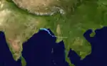 Though only a deep depression according to the IMD,[4] wind gusts up to 135 km/h (84 mph) caused extensive damage in Odisha.[11] Seven people were killed in the Puri district due to fallen trees from high winds. Along the coast of the Puri and Cuttack districts a significant storm surge flooded numerous areas, damaging or destroying many homes and disrupting the electrical grid. The Hansa River also broke its banks near Koilipur due to a combination of the surge and heavy rains.[12] Offshore, 370 fishermen went missing after sailing into the storm.[11] The remnant system, entangled within the seasonal monsoon, produced torrential rains as far west as Gujarat. At least 41 people were killed in rain-related incidents across the country.[13]