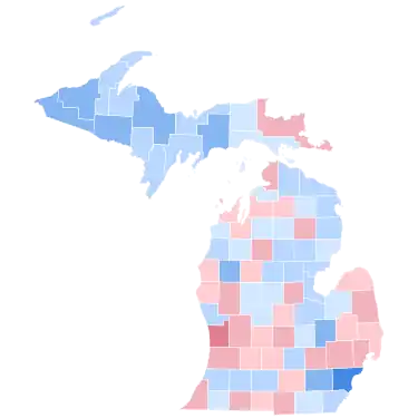 As of the 2020 presidential election, this is the last time that Oakland County voted for a Republican presidential candidate and the last time that Charlevoix County voted for a Democratic presidential candidate.[4] Michigan voted most similarly to the national results of the election.