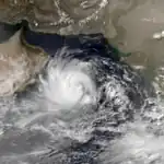After the annual monsoon moved across India, a thermal low developed in early June over Maharashtra in west-central India. Steered by the flow of the monsoon, the low moved offshore and tracked generally west-northwestward, bringing heavy rainfall and gusty winds to the coast. Ratnagiri, Maharashtra reported sustained winds of 74 km/h (46 mph). The IMD classified the low as a depression late on June 5, and upgraded it further to a cyclonic storm the next day. On June 7, the JTWC initiated advisories on the system, designating it Tropical Cyclone 03A and estimating peak winds of 85 km/h (55 mph). On the same day, the IMD upgraded the system to a severe cyclonic storm, estimating peak winds of 100 km/h (60 mph). The storm weakened as it continued across the northern Arabian Sea. By June 9, the storm had weakened to a depression, and that day it passed near Masirah Island before moving over eastern Oman. The circulation dissipated soon after, but the remnants of the storm continued westward into Yemen. Along the Arabian Peninsula, the cyclone produced dust storms but little rainfall.[1][2][5]